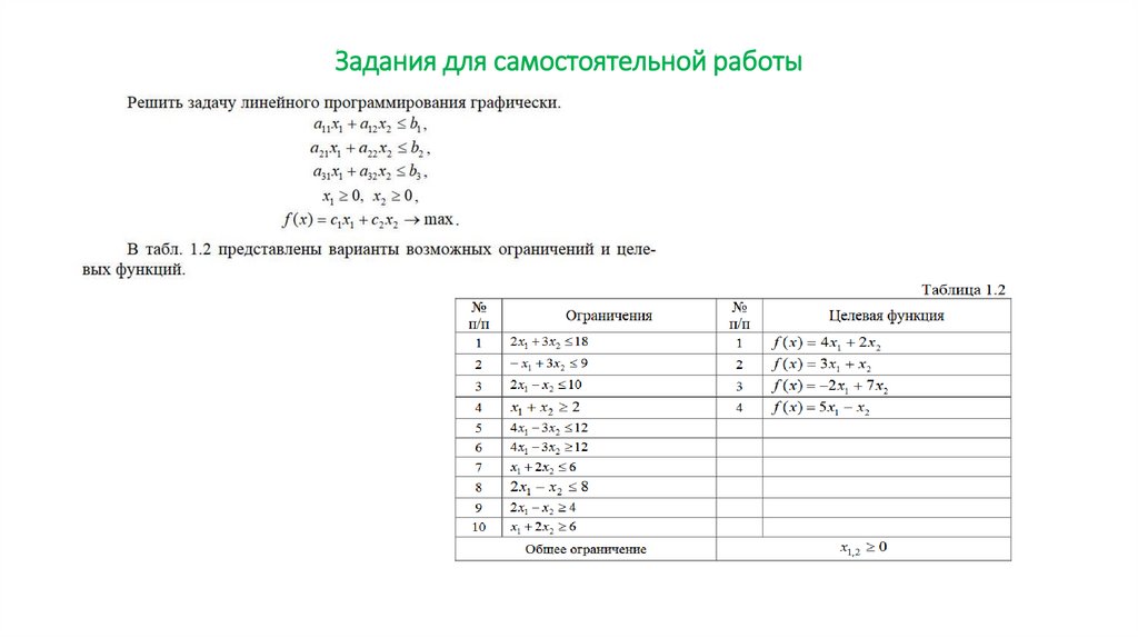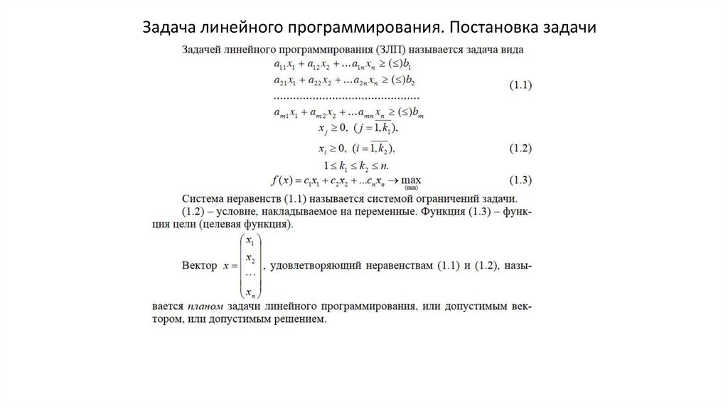 Задача линейного программирования. Постановка задачи2.