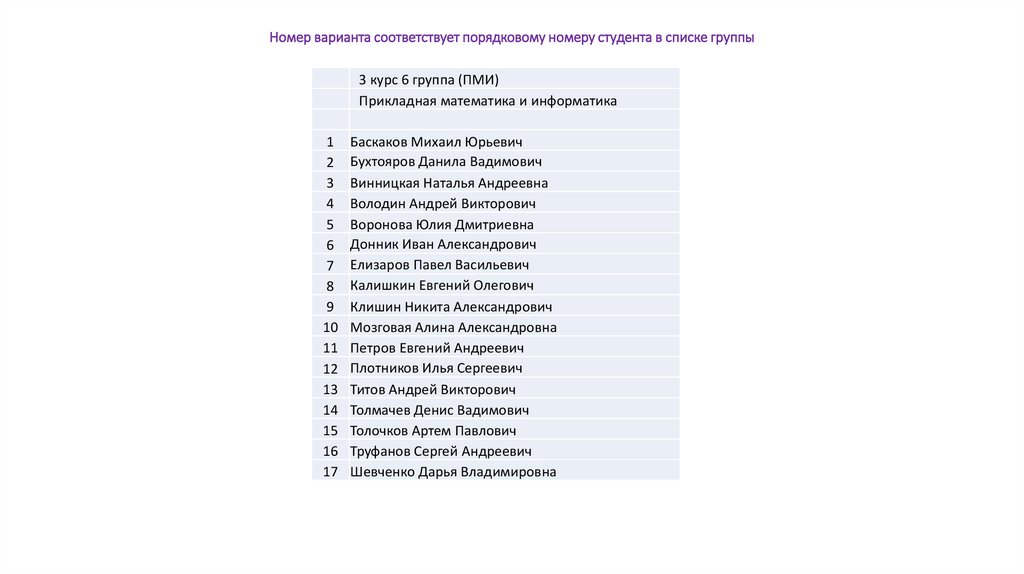 Номер варианта соответствует порядковому номеру студента в списке группы3 курс 6 группа (ПМИ)