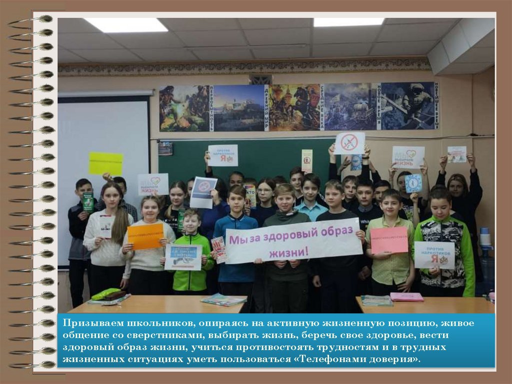 Призываем школьников, опираясь на активную жизненную позицию, живоеобщение со сверстниками, выбирать жизнь, беречь свое здоровье, вести