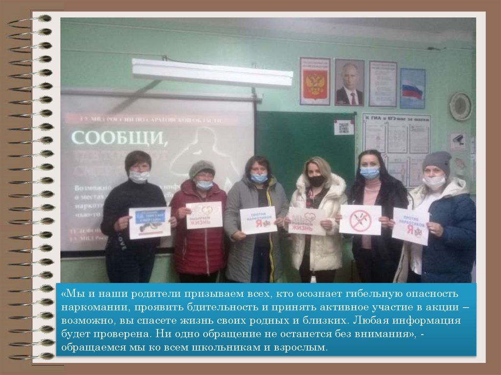 «Мы и наши родители призываем всех, кто осознает гибельную опасностьнаркомании, проявить бдительность и принять активное участие в акции –