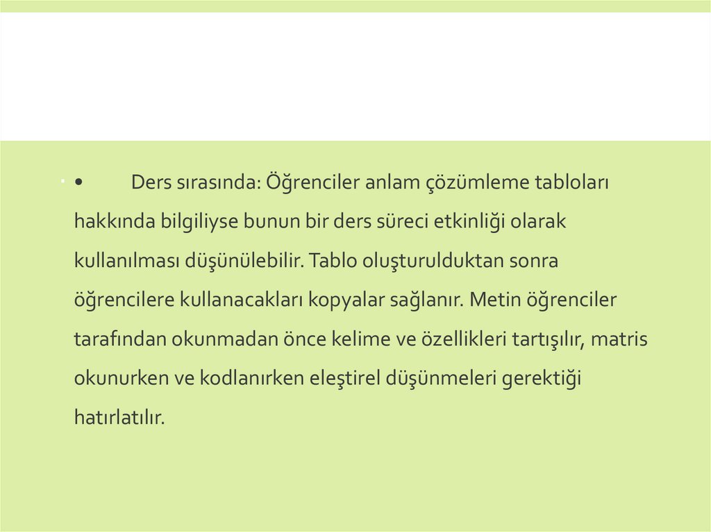 gibi kullanabilirler. Diğer yandan öğretmenler, anlam çözümleme