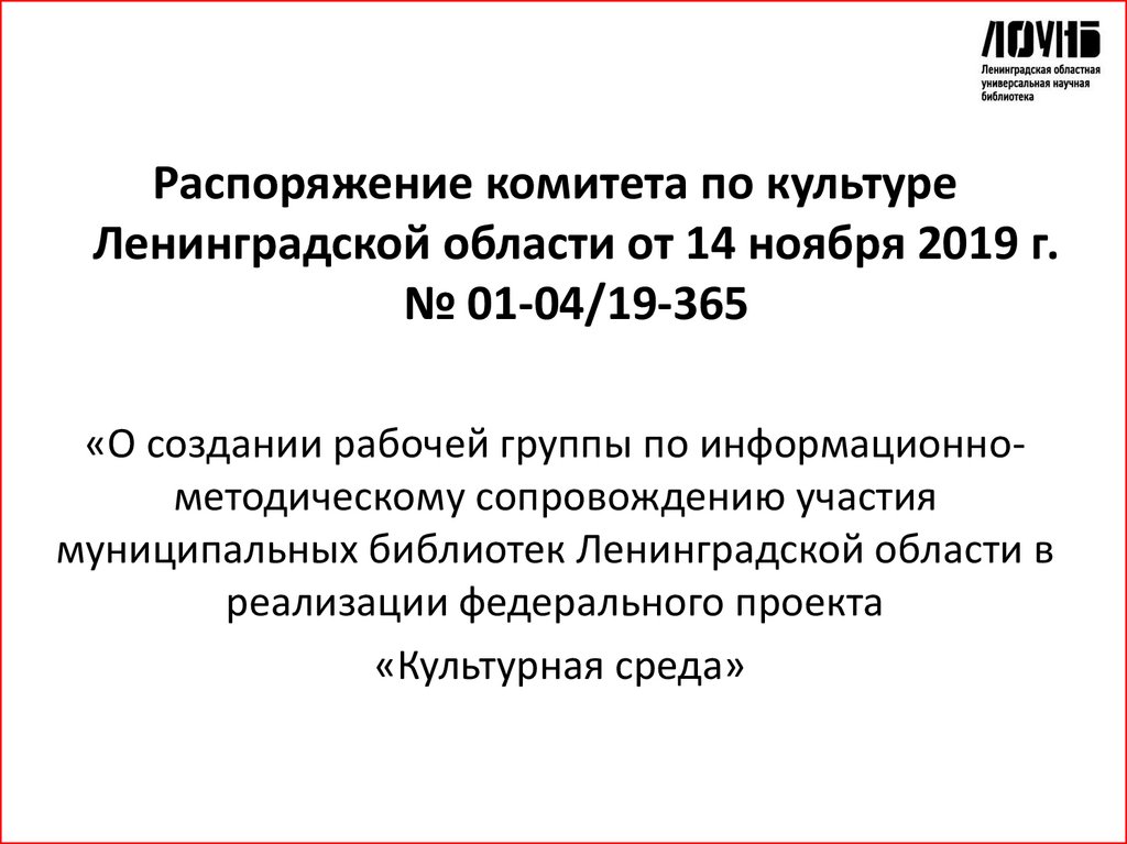 Распоряжение комитета по культуреЛенинградской области от 14 ноября 2019 г.