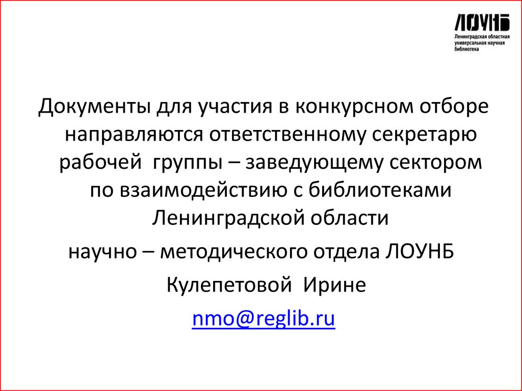Документы для участия в конкурсном отборенаправляются ответственному секретарю