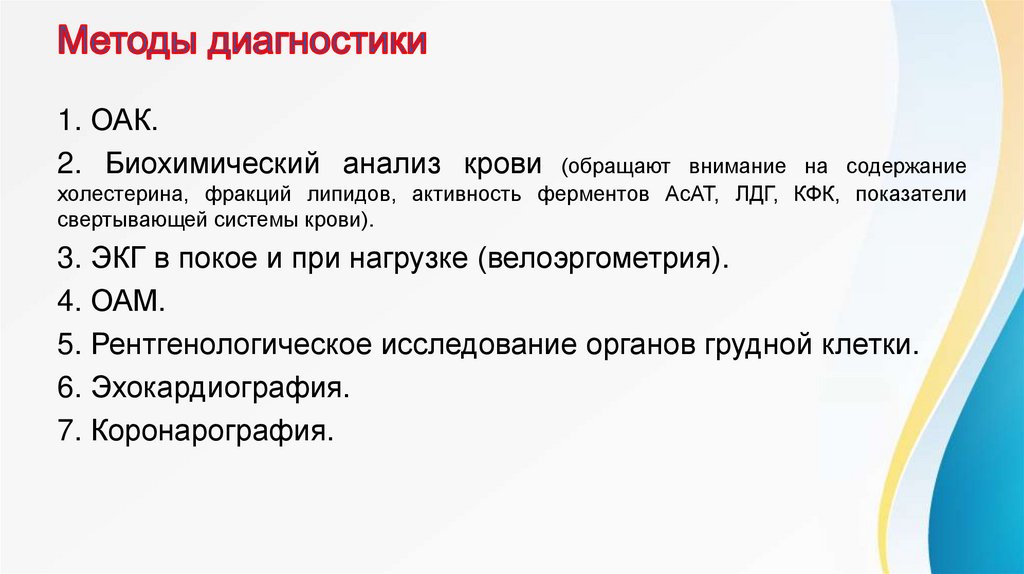 ткани в зоне инфаркта). Основные симптомы: постепенно