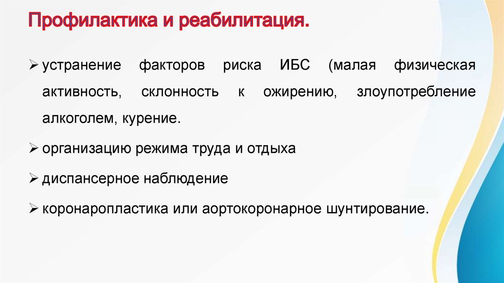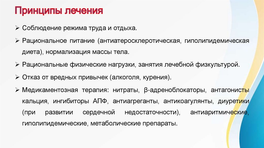 Соблюдение режима труда и отдыха.Рациональное питание (антиатеросклеротическая, гиполипидемическая