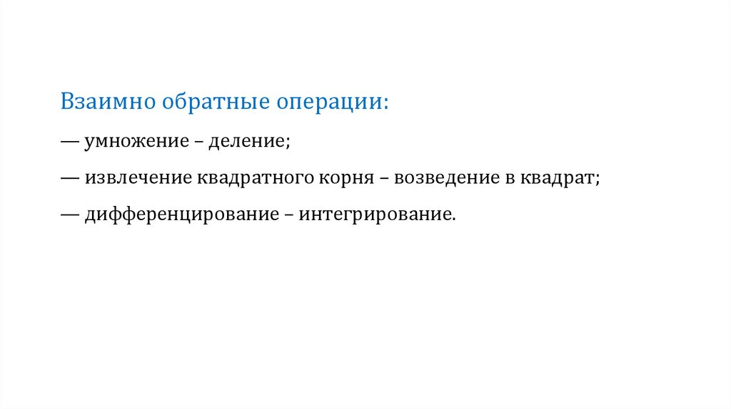 Взаимно обратные операции:— умножение – деление;