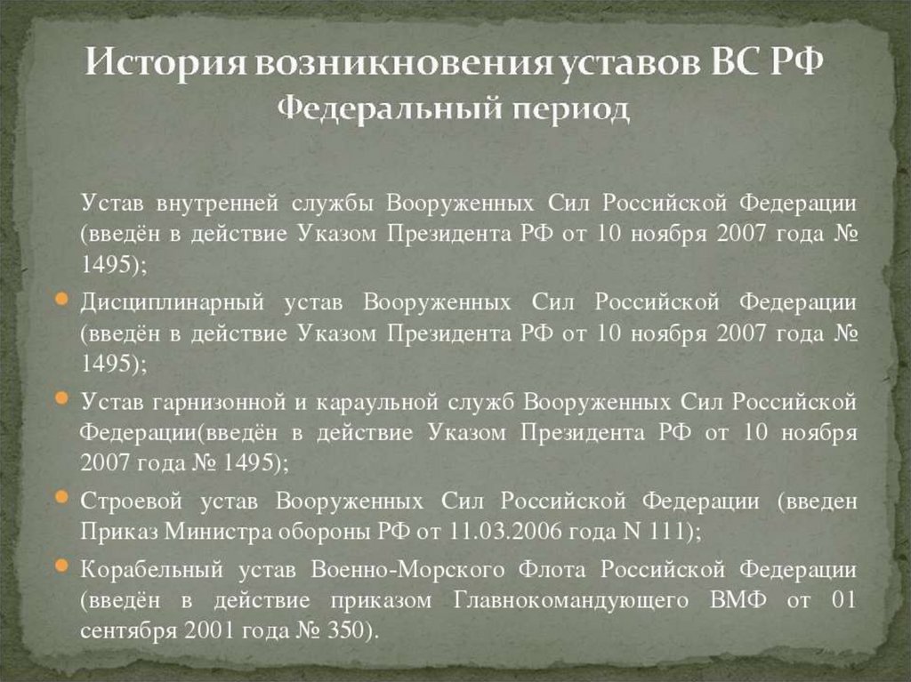 Воинские уставы и воинские коллективы. Воинская дисциплина. (11 класс)