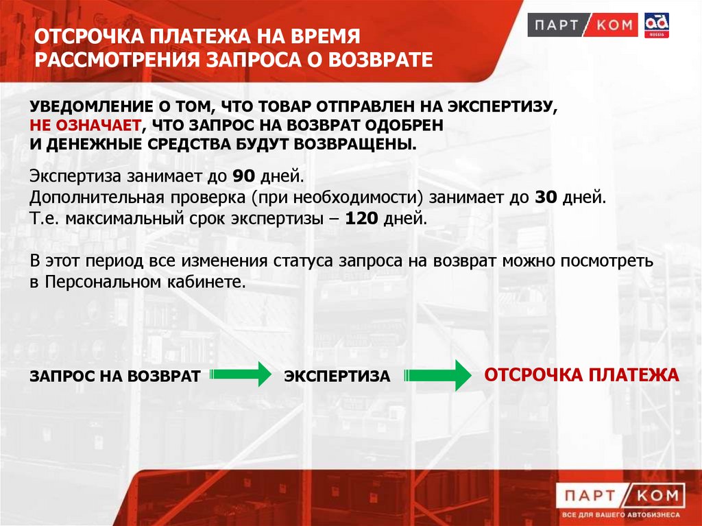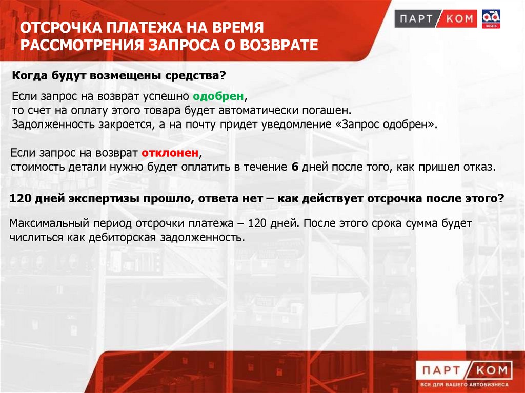 ОТСРОЧКА ПЛАТЕЖА НА ВРЕМЯРАССМОТРЕНИЯ ЗАПРОСА О ВОЗВРАТЕ