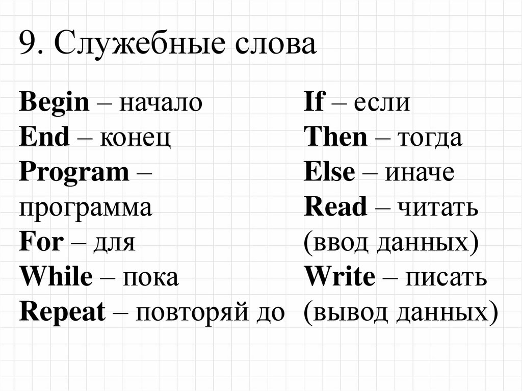 9. Служебные словаBegin – начало