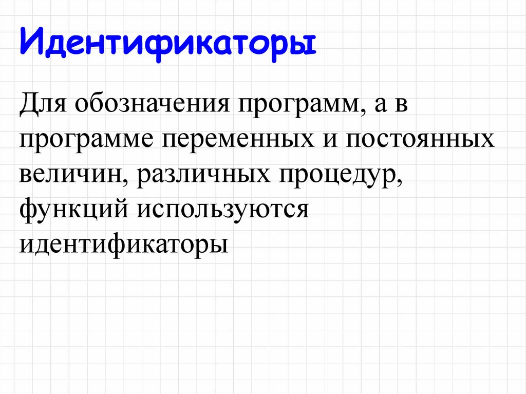ИдентификаторыДля обозначения программ, а в