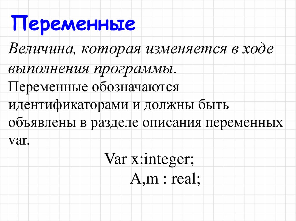 ПеременныеВеличина, которая изменяется в ходе