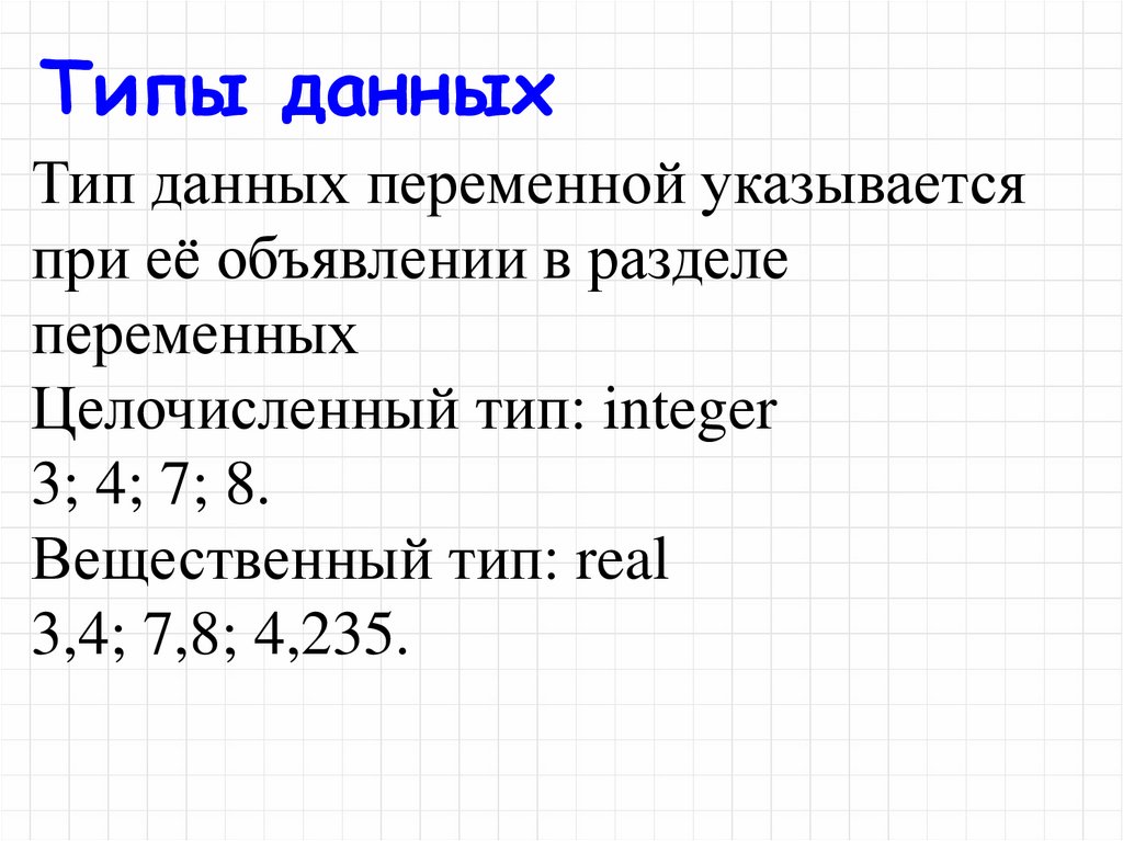 Типы данныхТип данных переменной указывается