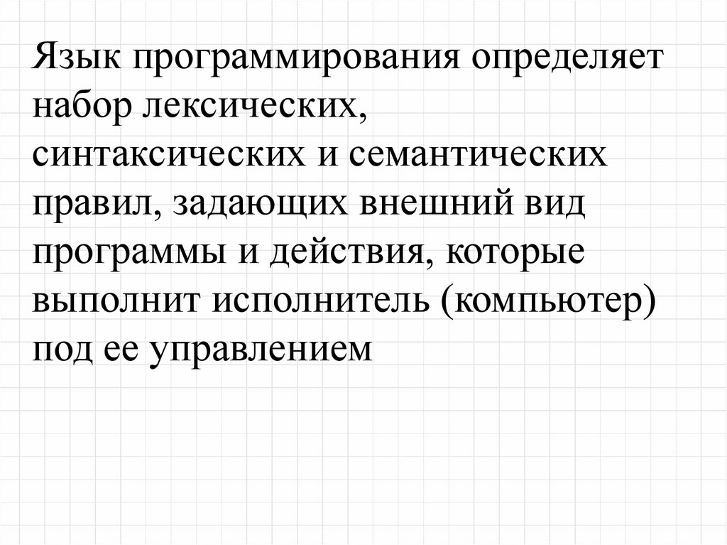 Язык программирования определяетнабор лексических,