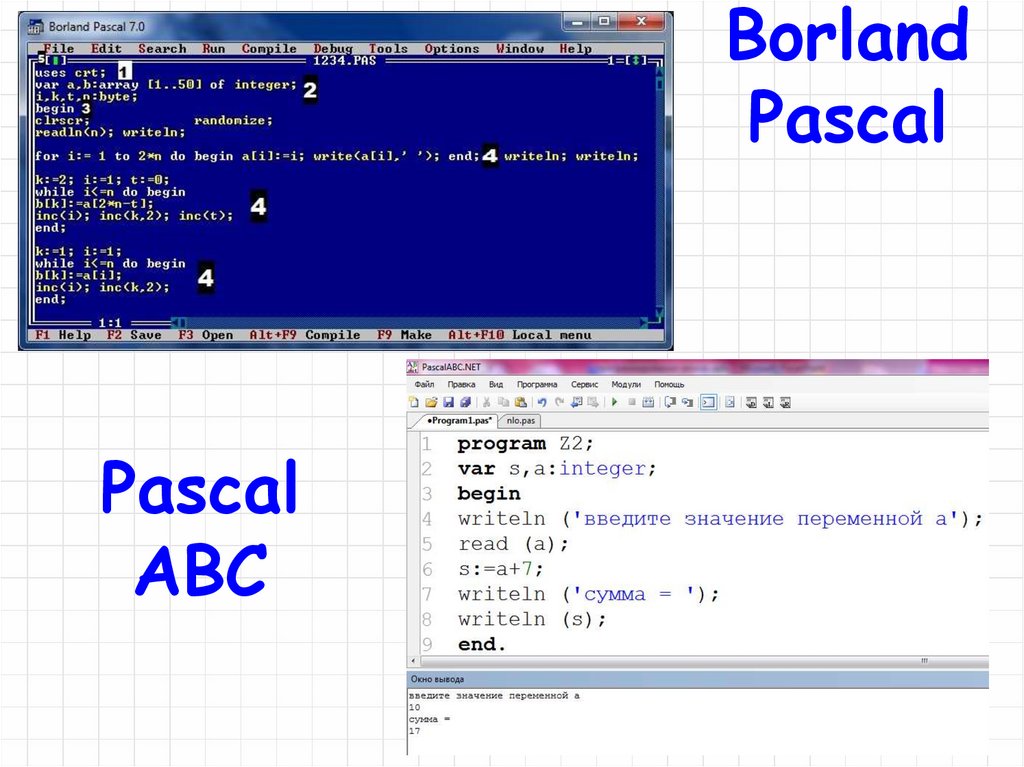 (Бейсик, Фортран, Паскаль)