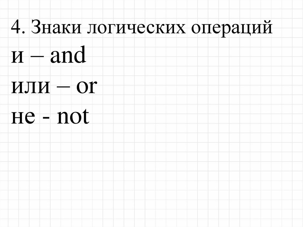 4. Знаки логических операцийи – and