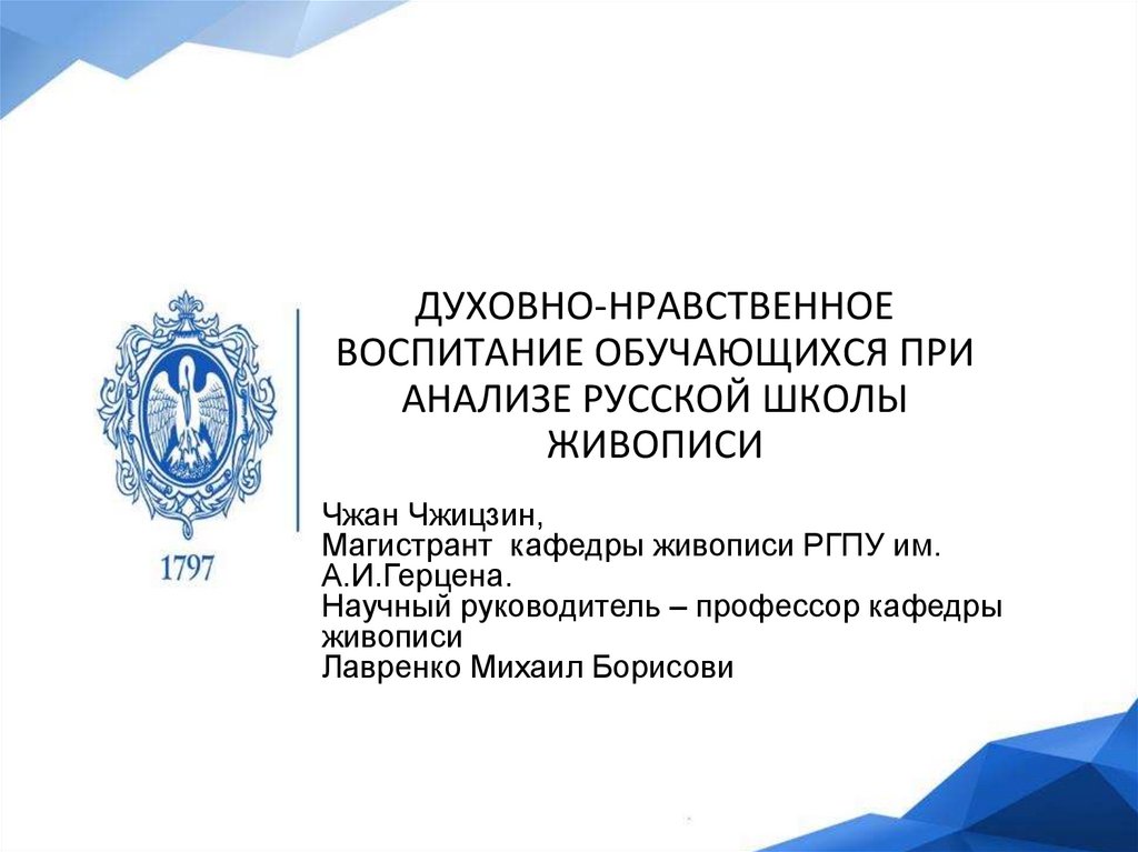 Чжан Чжицзин. Духовно-нравственное воспитание обучающихся при анализе русской школы живописи