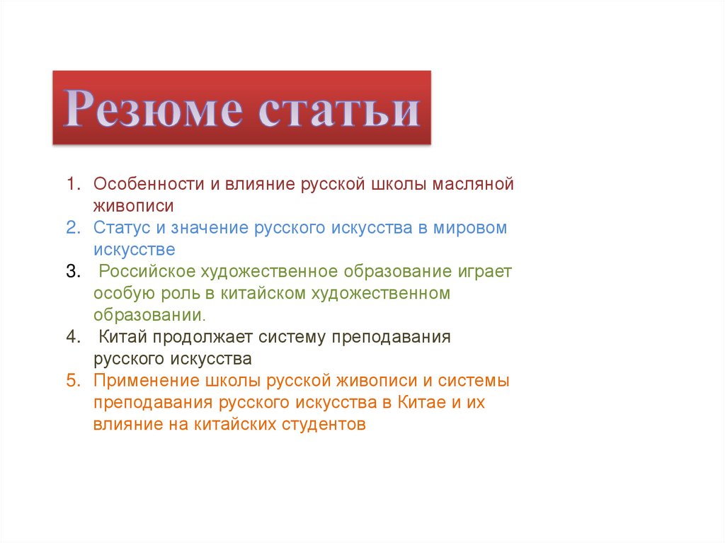 5. Применение школы русской живописи и системы