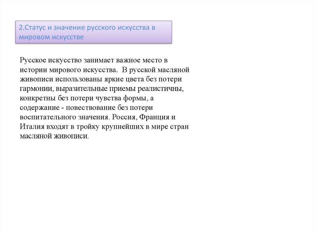 2. Статус и значение русского искусства в мировом