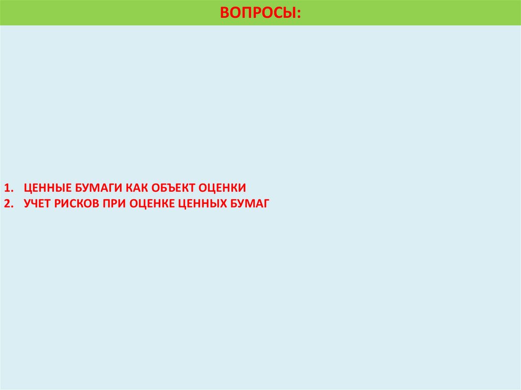 ВОПРОСЫ:1. ЦЕННЫЕ БУМАГИ КАК ОБЪЕКТ ОЦЕНКИ