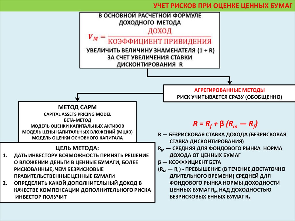 УЧЕТ РИСКОВ ПРИ ОЦЕНКЕ ЦЕННЫХ БУМАГАГРЕГИРОВАННЫЕ МЕТОДЫ