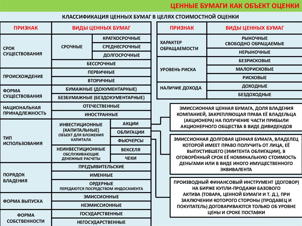 ЦЕННЫЕ БУМАГИ КАК ОБЪЕКТ ОЦЕНКИКЛАССИФИКАЦИЯ ЦЕННЫХ БУМАГ В ЦЕЛЯХ СТОИМОСТНОЙ ОЦЕНКИ