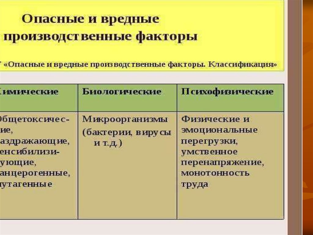 Классификация вредных и опасных факторов