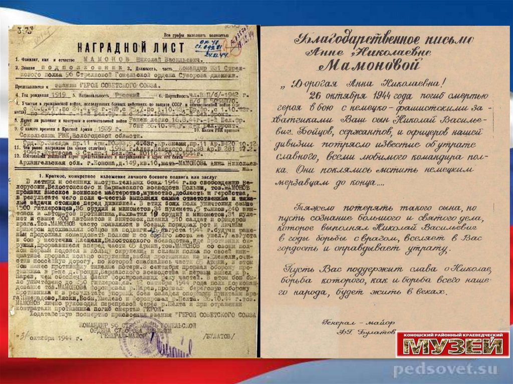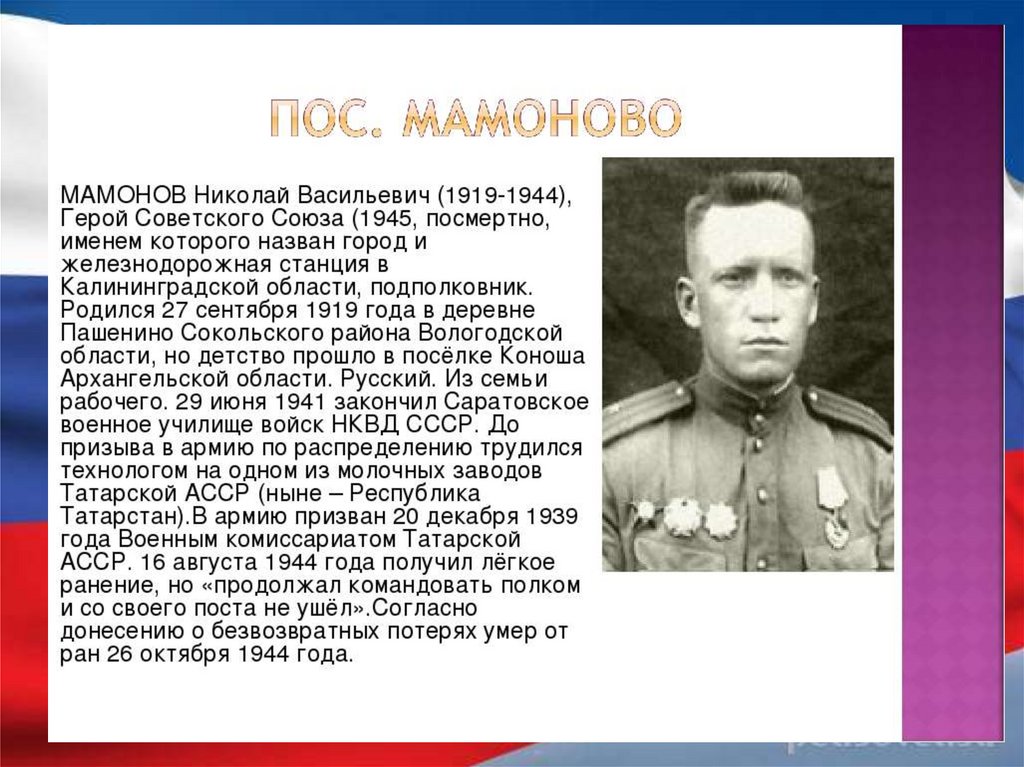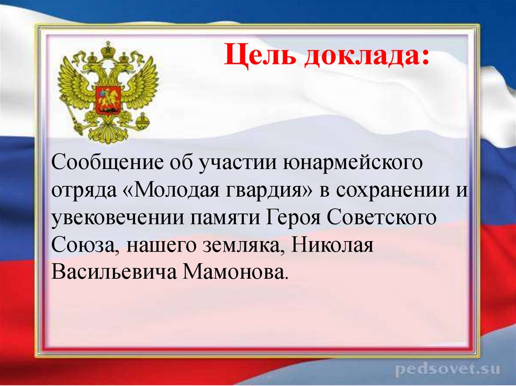 Юнармейский отряд имени Героя СоветскогоСоюза Николая Васильевича Мамонова