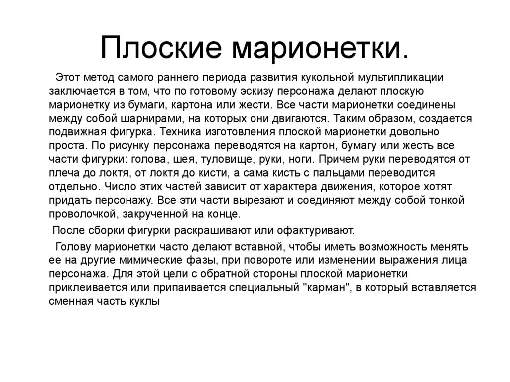 персонажа. Для этой цели с обратной стороны плоской марионетки