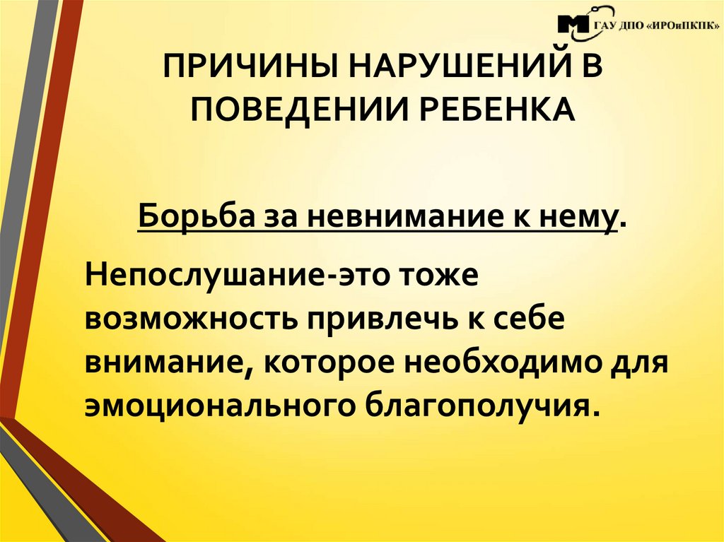 ПРИЧИНЫ НАРУШЕНИЙ ВПОВЕДЕНИИ РЕБЕНКА