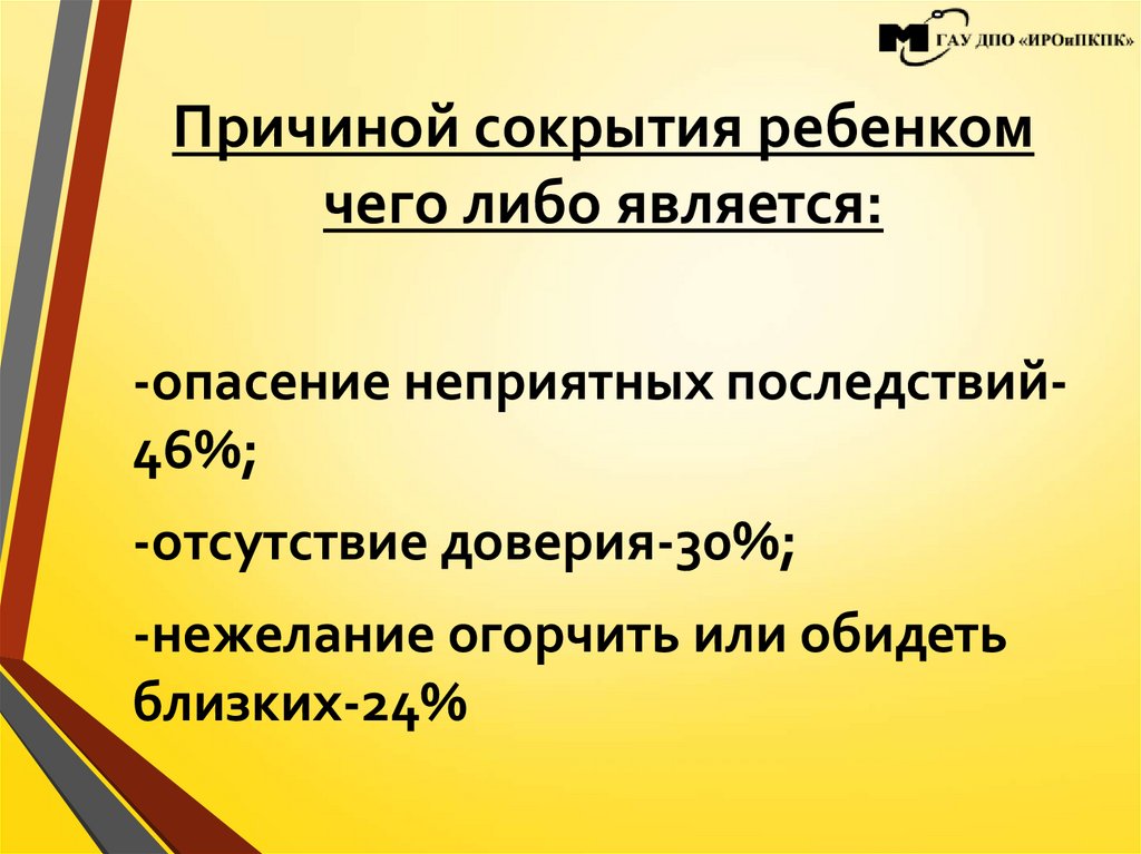 Причиной сокрытия ребенкомчего либо является: