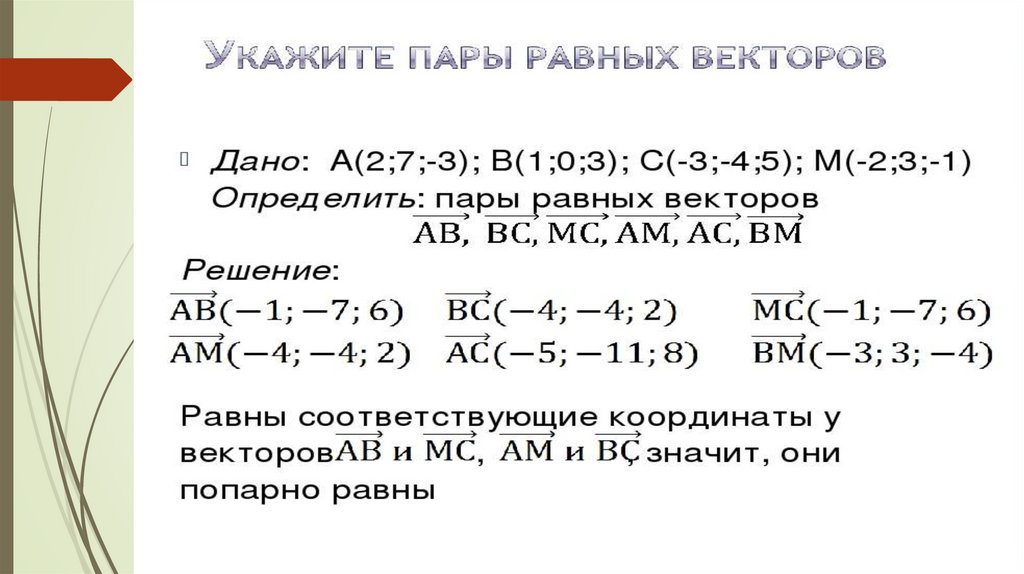 Координаты вектора в