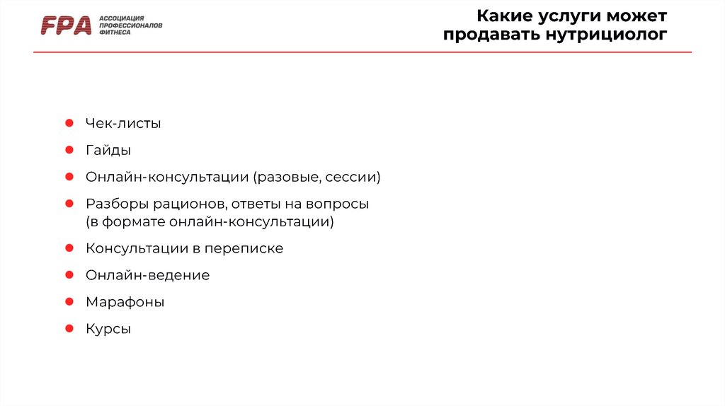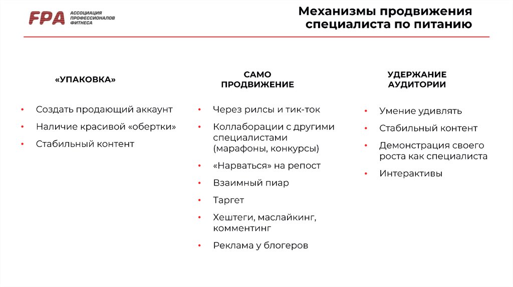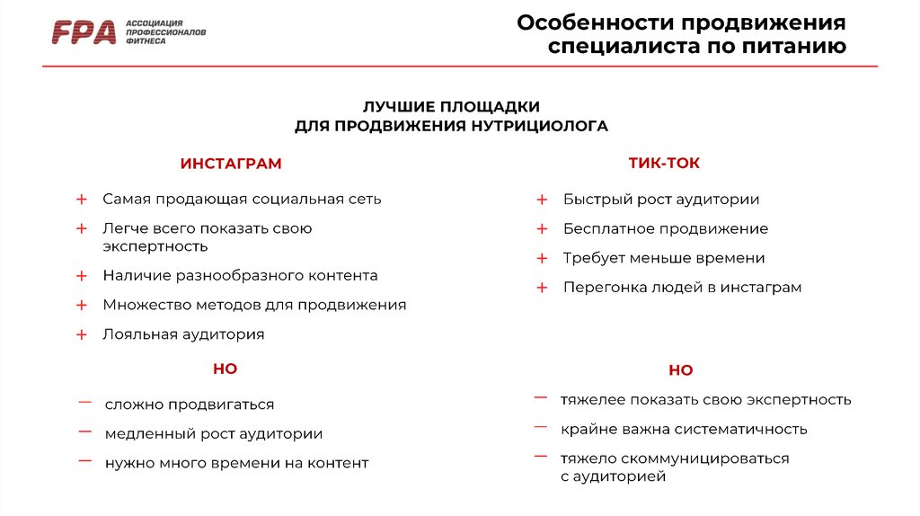 Продвижение и работа специалиста по питанию онлайн