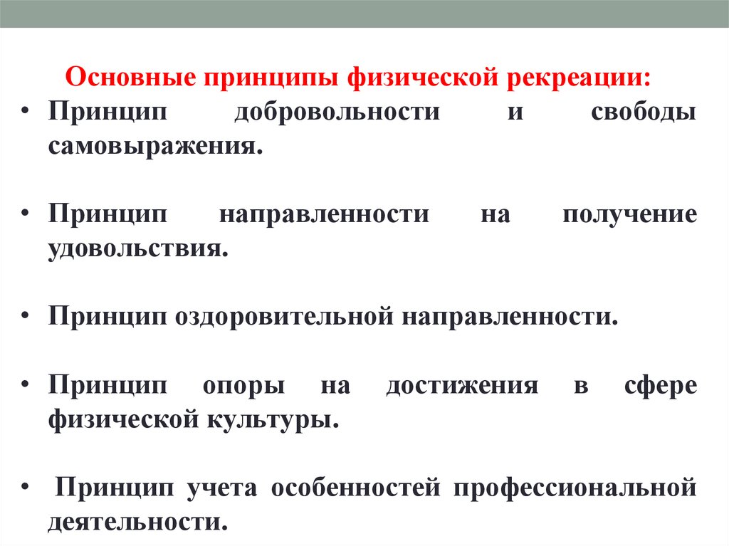 Основные принципы физической рекреации:• Принцип
