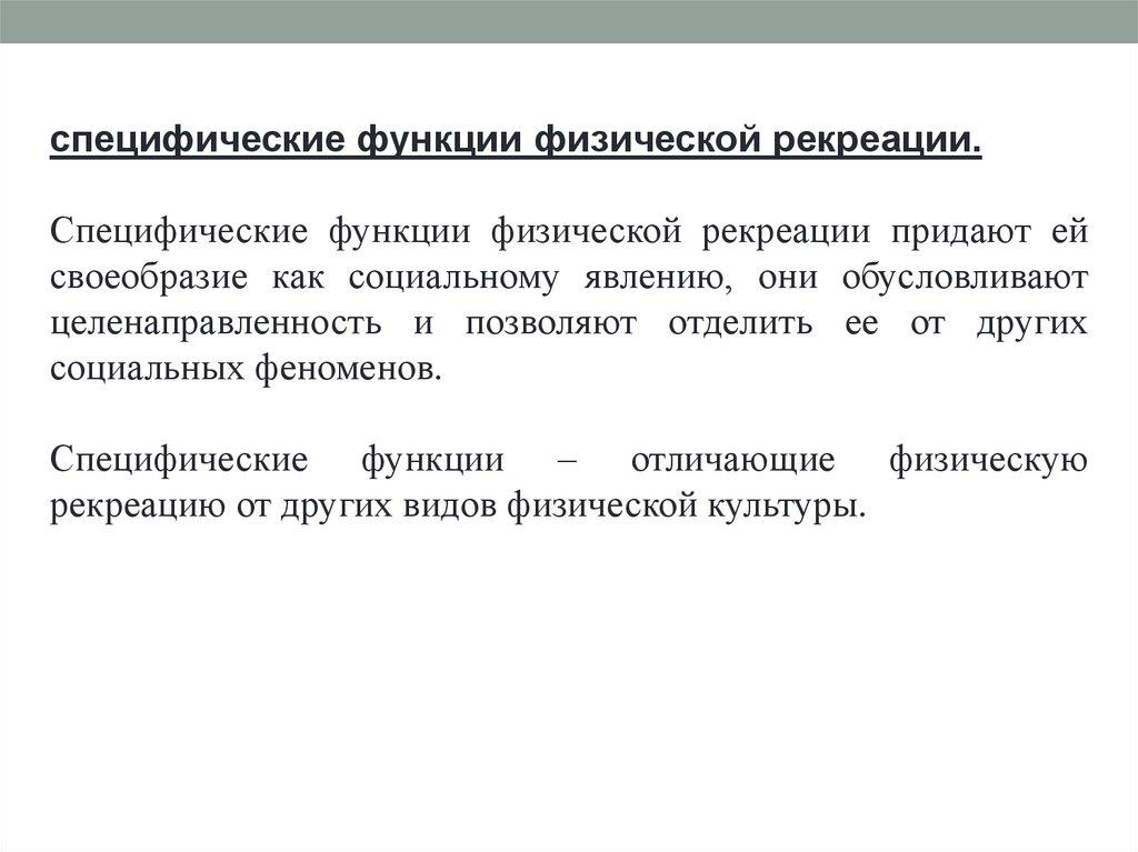 специфические функции физической рекреации.Специфические функции физической рекреации придают ей