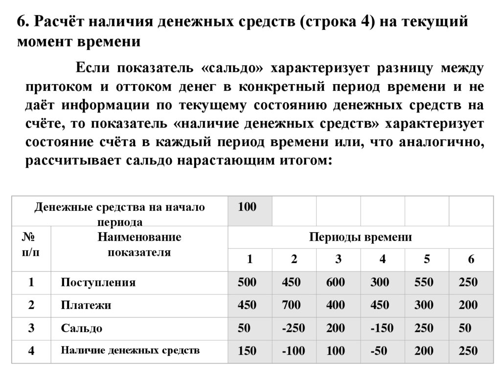 расчет сальдо и наличия денежных средств по