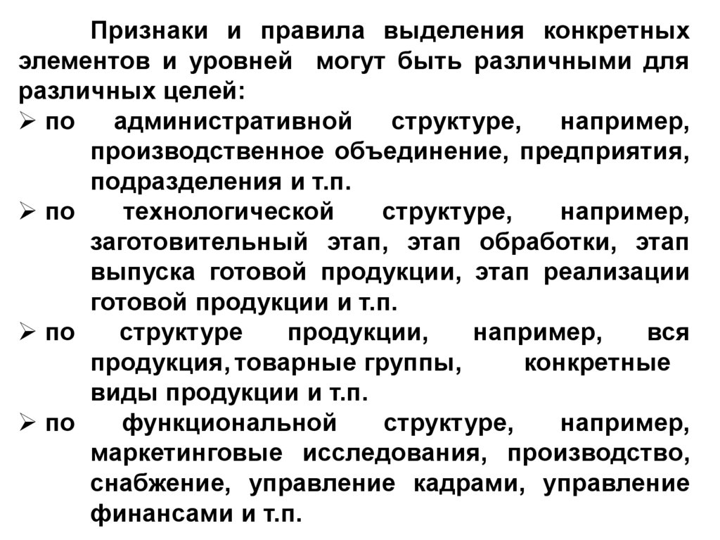 виды продукции и т.п.