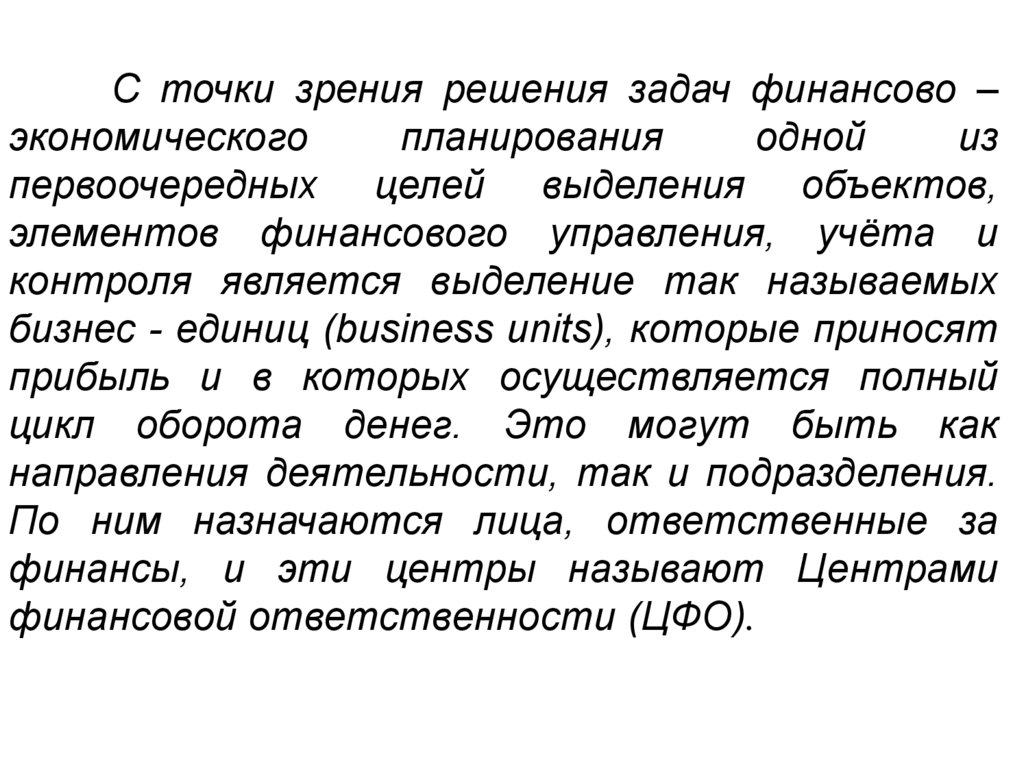 центрами финансовой ответственности, так и в