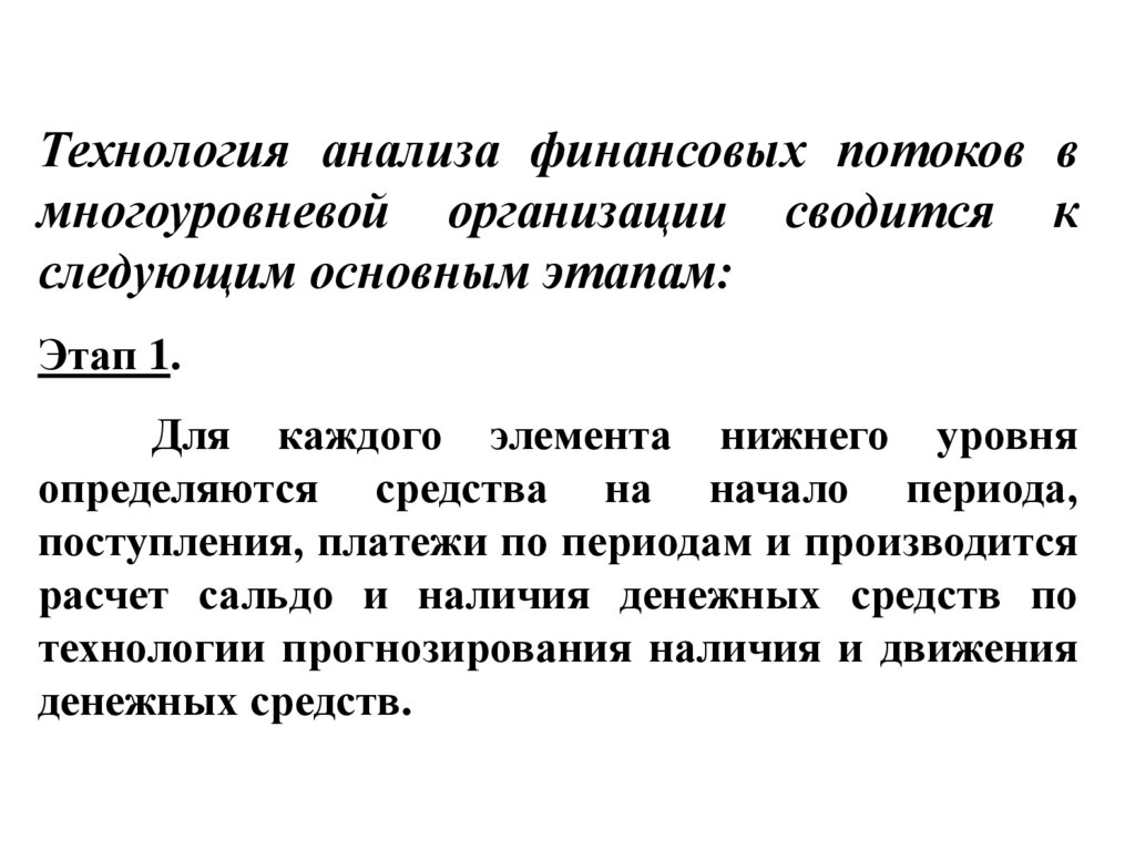 Технология анализа финансовых потоков вмногоуровневой организации сводится к