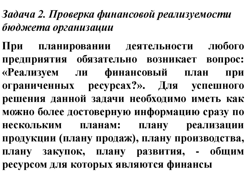 Задача 2. Проверка финансовой реализуемостибюджета организации