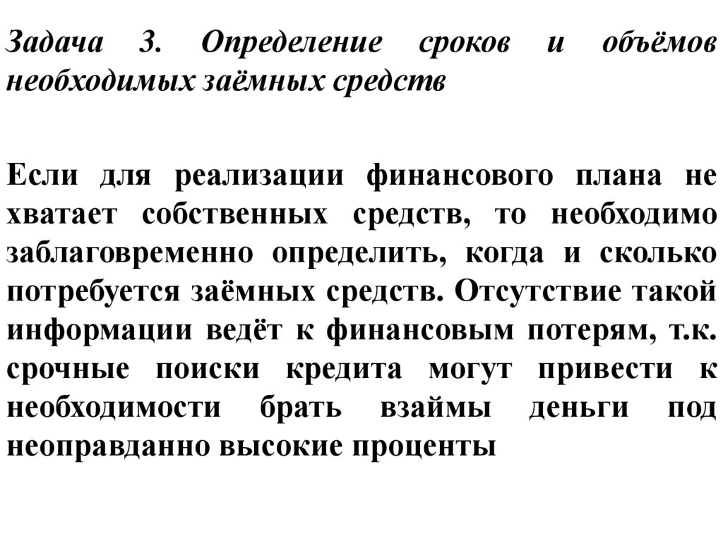 Задача 3. Определение сроковнеобходимых заёмных средств