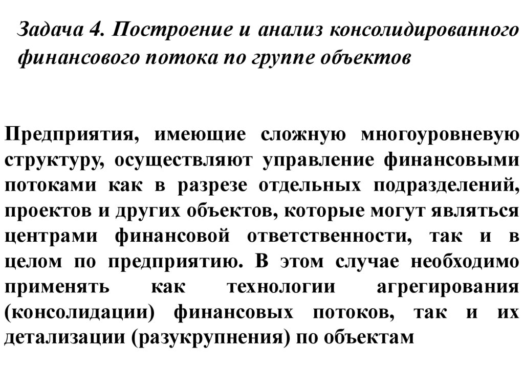 Задача 4. Построение и анализ консолидированногофинансового потока по группе объектов