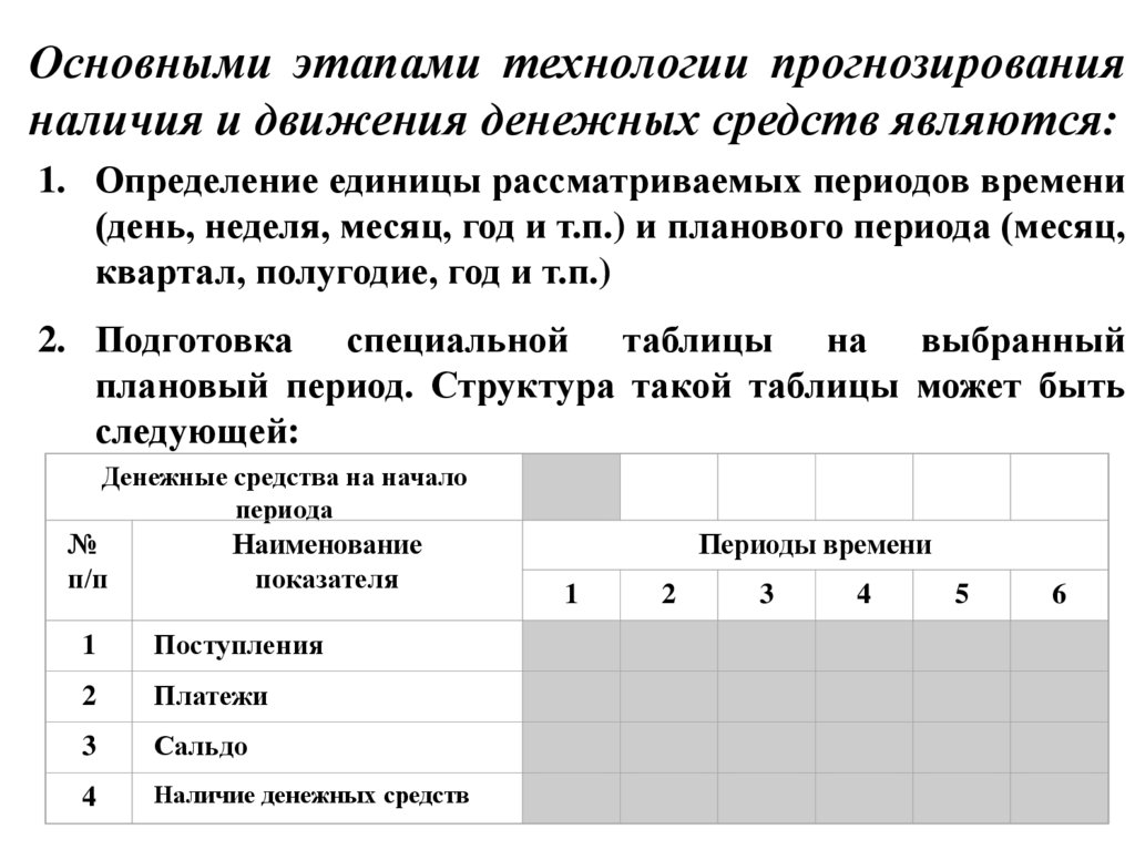 1. Технология прогнозирования наличия идвижения денежных средств