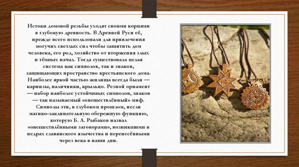 Истоки домовой резьбы уходят своими корнямив глубокую древность. В Древней Руси её,
