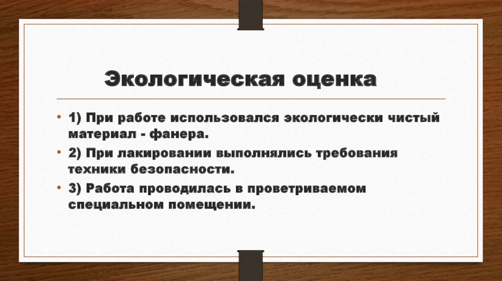 Экологическая оценка• 1) При работе использовался экологически чистый
