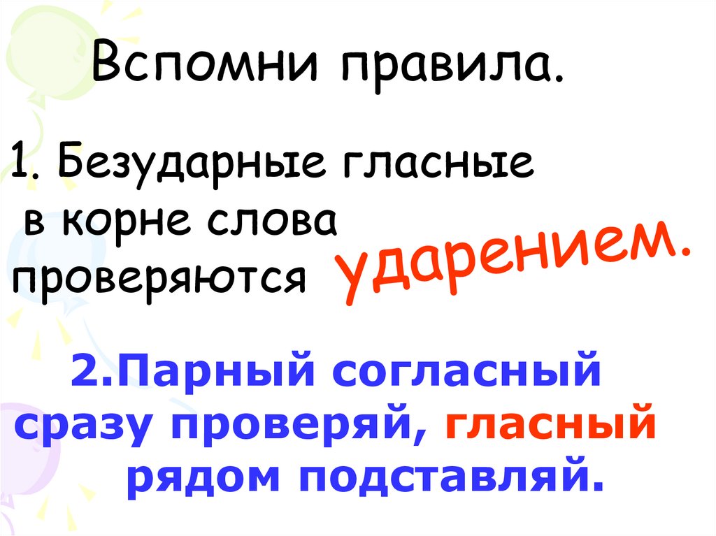 Вспомни правила.1. Безударные гласные