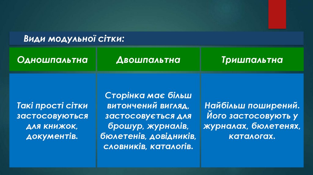 Види модульної сітки:Одношпальтна