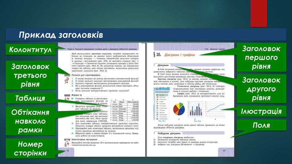 Розглянемо заголовки підручника, що утворюють ієрархічну
