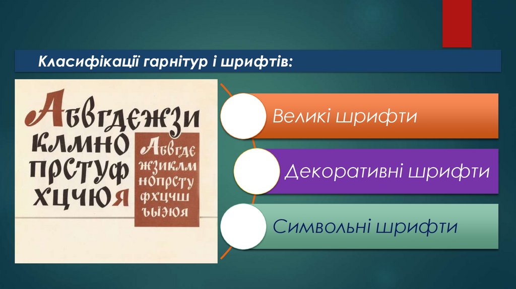 Класифікації гарнітур і шрифтів:Великі шрифти