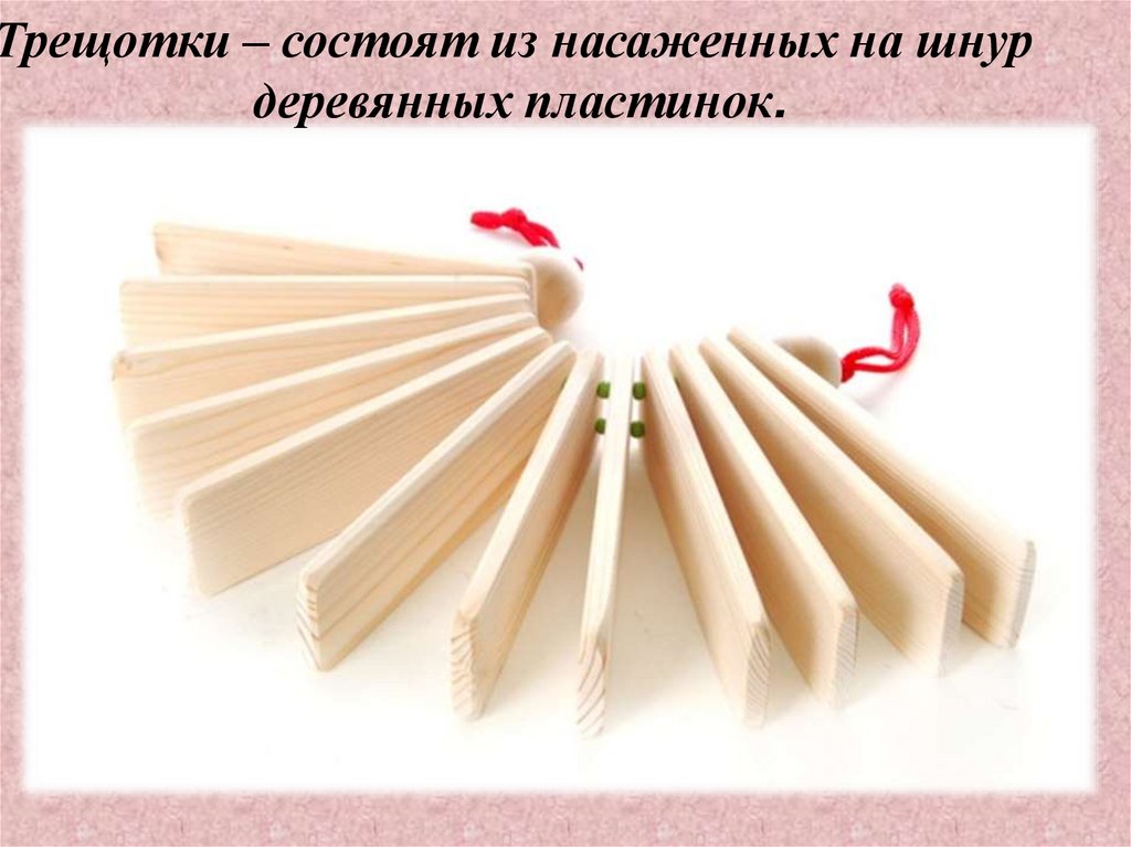 Трещотки – состоят из насаженных на шнурдеревянных пластинок.