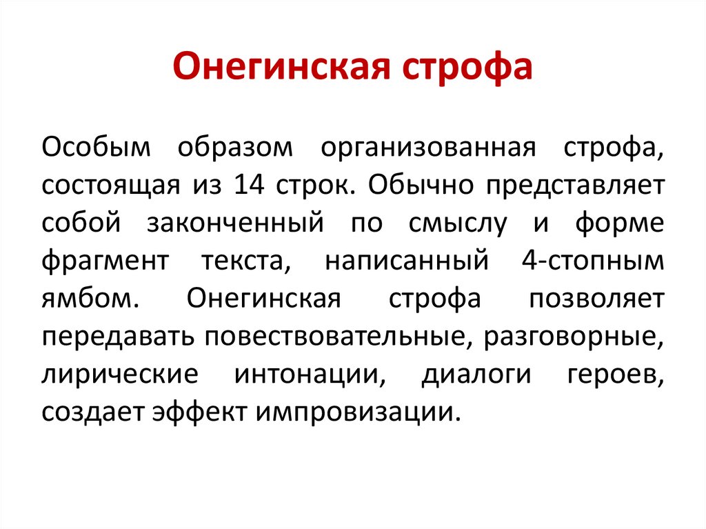 Онегинская строфаОсобым образом организованная строфа,